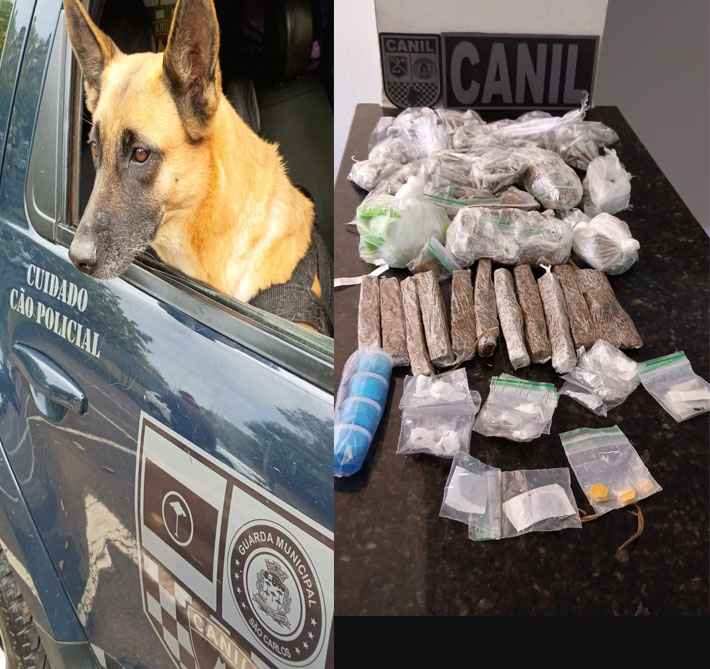 O Canil da Guarda Municipal apreendeu muita drogas nesta manhã de quinta-feira, 29 de maio de 2025, na Av. João Dagnone, bairro Santa Angelina, São Carlos-SP.