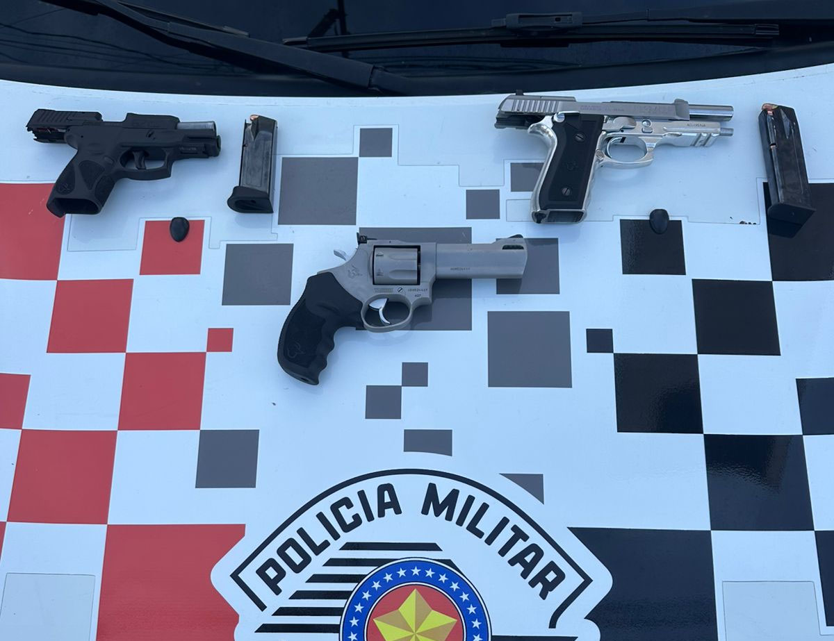 A Polícia Militar deteve nesta manhã de quinta-feira, 5 de junho de 2025, um sujeito de 31 anos e apreendeu 3 armas de fogo na Rua Paraná, bairro Jd. Pacaembu, São Carlos-SP. A detenção correu por volta das 7h00.