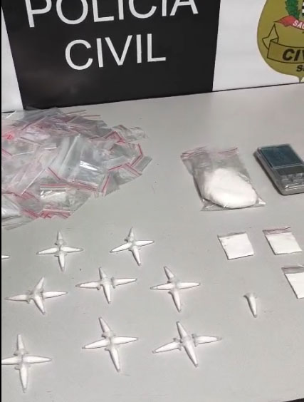 A Polícia Civil do Estado de São Paulo, por meio da D.I.S.E. de São Carlos, durante atuação de campo de Polícia Judiciária no bairro Douradinho, efetuou a prisão em flagrante de um indivíduo (A. S. C. F. - 40 anos) pela prática do crime de tráfico de drogas. Na ocasião da atuação policial, foram localizadas várias porções de cocaína e “crack”, todas prontas e embaladas para comercialização, balanças de precisão, embalagens vazias e um simulacro de arma de fogo do tipo pistola. Após ser autuado em flagrante, o detido foi conduzido ao Centro de Triagem local.