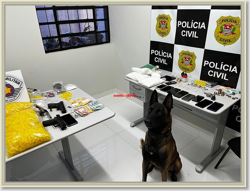 De acordo com informações, em operação conjunta com o policiamento territorial e a Polícia Civil, a equipe de BAEP na modalidade Canil, com o apoio do cão policial, logrou êxito em localizar drogas, dinheiro e arma de fogo. Não foi divulgado se alguém foi preso.