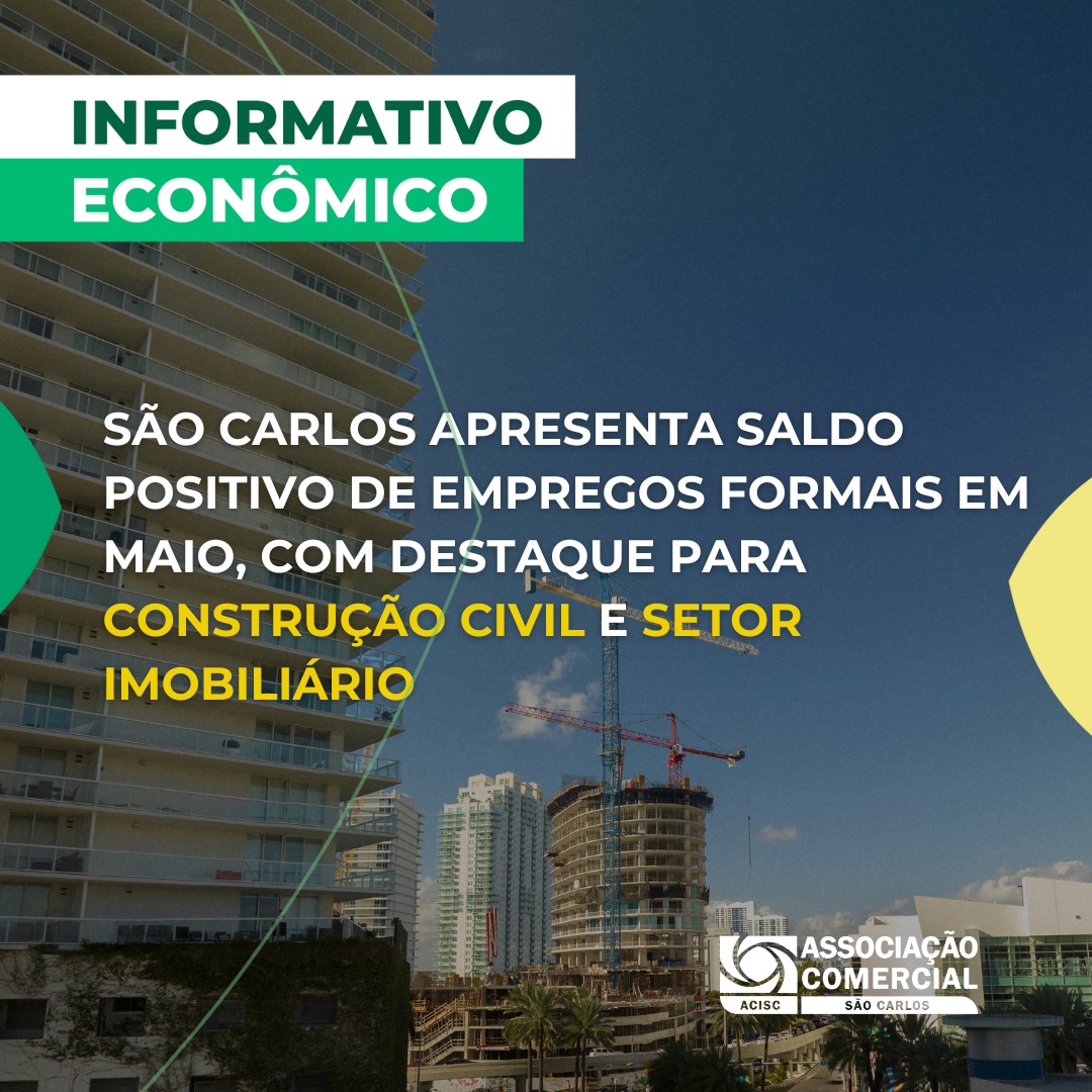 A Associação Comercial e Industrial de São Carlos (ACISC) divulgou nesta quinta-feira (03) seu Informativo Econômico referente ao mês de maio de 2025. O levantamento, elaborado pelo Núcleo de Economia da entidade, mostra que o município atingiu um total de 89.526 vínculos formais de trabalho, com a criação de 282 novas vagas com carteira assinada. O resultado representa um crescimento em relação ao mesmo período do ano passado, quando foram registrados 183 novos postos.