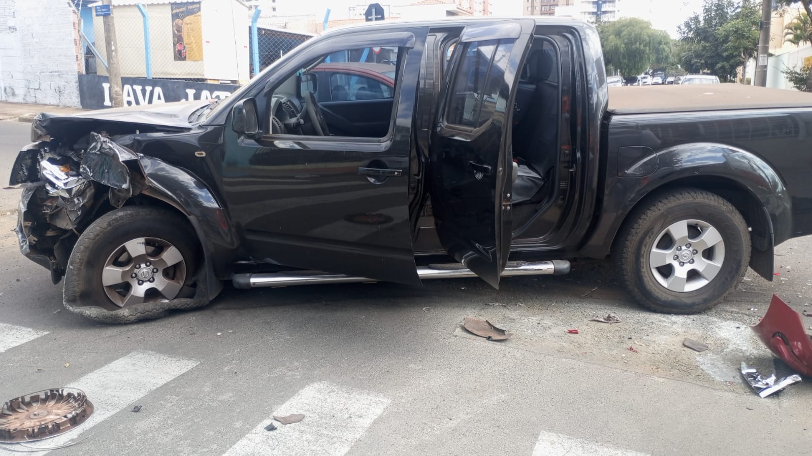 Uma colisão entre uma caminhonete e um Citroen C3 foi registrada na altura do cruzamento da Dom Pedro II com a Orlando Damiano no Centro de São Carlos.