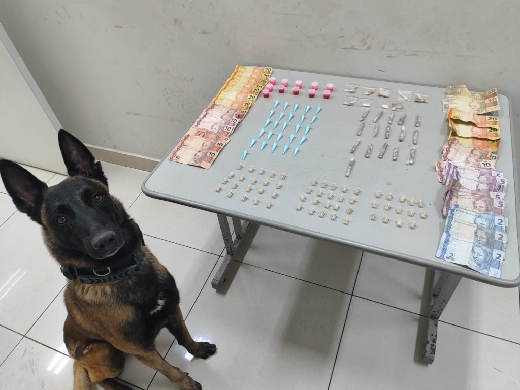 De acordo com a polícia, os agentes realizavam rondas em uma área conhecida pela intensa movimentação do tráfico de drogas,  quando suspeitos fugiram ao avistar a viatura. Durante o cerco, um dos indivíduos foi capturado. Na consulta ao sistema, os policiais constataram que havia um mandado de prisão em aberto contra o rapaz. Na sequência, com o apoio do cão farejador, foram localizadas pedras de crack, porções de maconha, pinos de cocaína e cerca de R$ 400 em dinheiro. O homem foi encaminhado ao Plantão Policial, onde permaneceu à disposição da autoridade judiciária.