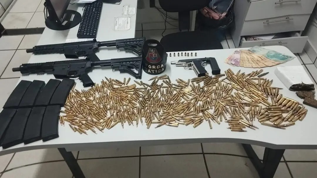 Segundo informações, era por volta da 1h08, equipes receberam uma denúncia através do Centro de Operações da Polícia Militar, que um indivíduos em um veículo Hb20 teriam efetuado disparos de arma de fogo contra um sujeito, o qual estava em um veículo Saveiro. Os policiais localizaram e abordaram os indivíduos na Avenida Apia. Durante a abordagem, um confessou os disparos e indicou o local onde havia deixado a arma. Na residência apontada, os policiais visualizaram pelo portão uma pistola calibre .380 e munições no chão da garagem. O proprietário, já conhecido da polícia e apontado como integrante de facção criminosa, autorizou a entrada da equipe. No interior do imóvel, foram encontrados dois fuzis calibre 5.56, 466 munições do mesmo calibre, oito carregadores de fuzil, além de aproximadamente 350 gramas de maconha, celulares e dinheiro. A ocorrência foi encaminhada para a Delegacia da Polícia Civil, onde os detidos foram presos em flagrante.