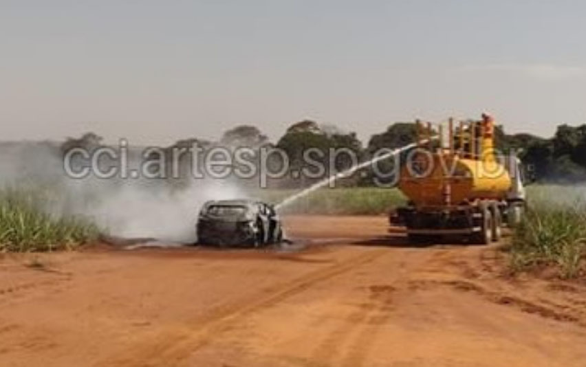 Um corpo carbonizado foi encontrado no começo da tarde desta segunda-feira, 25 de agosto de 2025, dentro de um carro incendiado em um canavial na rodovia Brigadeiro Faria Lima, em Jaboticabal-SP.