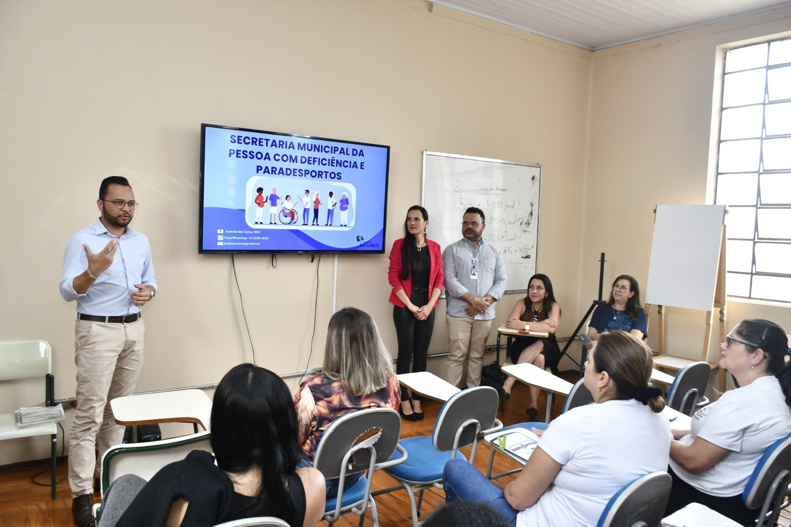 Como parte da programação da Semana da Pessoa com Deficiência Intelectual e Múltipla, a Secretaria da Pessoa com Deficiência e Paradesportos promoveu na última quinta-feira, dia 28 de agosto, uma palestra de orientação para os alunos do curso de Enfermagem da ETEC São Carlos. A ação teve como objetivo divulgar os serviços oferecidos pela Secretaria à população, entre eles a emissão do Cartão Mais Acesso, a cessão de equipamentos de tecnologia assistiva, o acolhimento social e as orientações às pessoas com deficiência e suas famílias. A iniciativa reforça o compromisso da gestão do prefeito Netto Donato, com a inclusão social e o acesso igualitário das pessoas com deficiência aos serviços e espaços públicos. A atividade foi resultado de uma parceria entre os Departamentos de Inclusão e Defesa dos Direitos das Pessoas com Deficiência — representados pelas diretoras Jacqueline Zoccolotti e Marilia Porto — e a ETEC São Carlos, por meio da coordenadora Cristiane Leite de Almeida. A palestra foi conduzida pelos técnicos da Secretaria, Drieli Ribeiro, chefe da Seção de Assistência Social às Pessoas com Deficiência, e Diego Silva, chefe da Seção de Campanhas. Os profissionais apresentaram aos estudantes informações práticas e atualizadas sobre os atendimentos e políticas públicas voltadas à pessoa com deficiência. O secretário da Pessoa com Deficiência e Paradesportos, Rafael Almeida, destacou a importância de ações como essa. “Essa ação é muito importante para gerar conhecimento, inclusão e, assim, garantir o acesso das pessoas com deficiência aos serviços que oferecemos. Estar hoje na ETEC com os alunos do curso de Enfermagem foi uma forma de levar os nossos serviços para que eles sejam multiplicadores de informação”, finalizou.