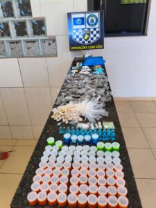 De acordo com informações, a GM estava em patrulhamento, quando avistou três indivÃduos em um local conhecido como ponto de tráfico de drogas. Os GMs não conseguiram realizar a abordagem, mas o cão farejador encontrou uma sacola no meio das folhas e dentro vários tipos de drogas. A ocorrência foi apresentada na Central de PolÃcia Judiciária, onde as drogas foram apreendidas pela PolÃcia Civil.