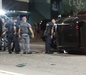 Câmeras de segurança registraram o momento em que a vÃtima está fugindo dos criminosos em uma perseguição quando bate em um ônibus e capota. Os atiradores estão em um SUV (Sport Utility Vehicle, ou VeÃculo Utilitário Esportivo, em português) Toyota Hilux SW4 preto, descem do veÃculo e disparam contra o delegado.Quem era o ex-delegado Ruy Ferraz