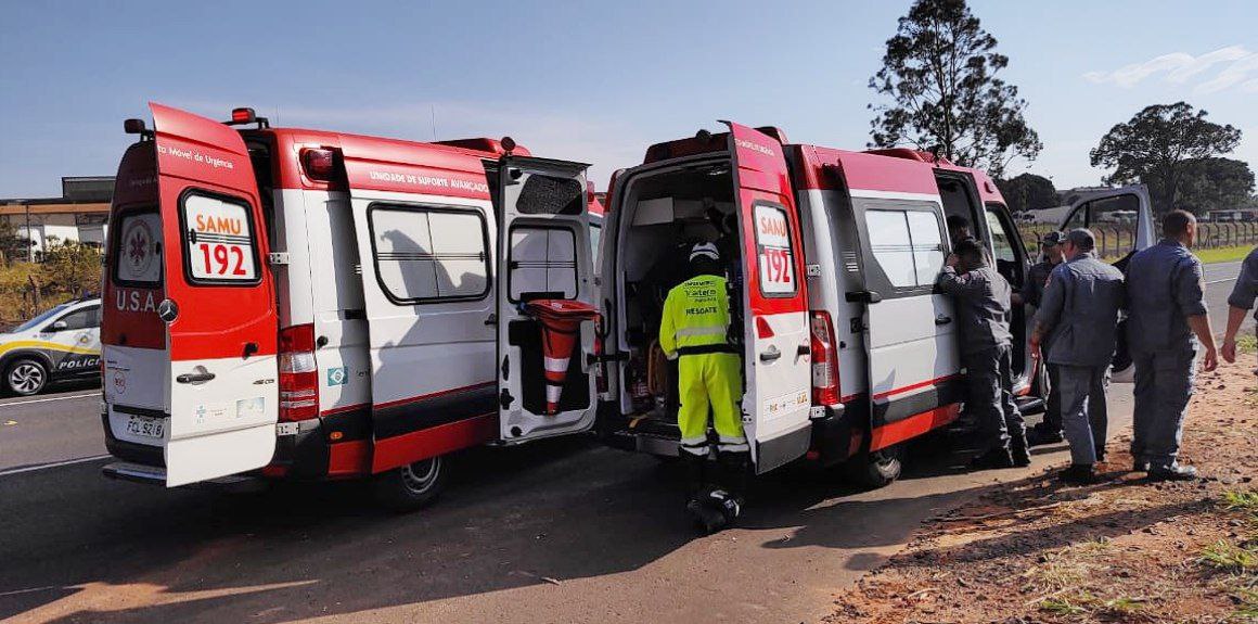 O motociclista que estava sendo socorrido pela ambulância foi transferido para outra ambulância e levado para a Santa Casa.