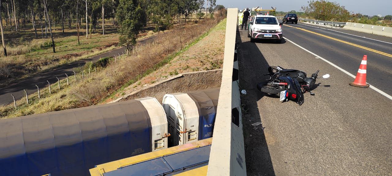 Um jovem motociclista sofreu um grave acidente na manhã desta sexta-feira (17), em um pontilhão em Araraquara-SP.