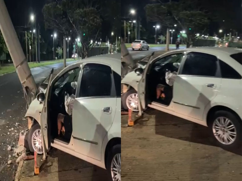 Um poste foi danificado por um carro nesta tarde de sábado, 18 de outubro de 2025, na Av. Miguel Petroni, região do bairro Santa FelÃcia, São Carlos-SP.