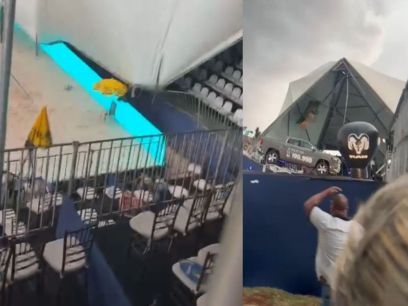 RIBEIRÃO PRETO: devido à chuva acompanhada de vendaval, uma tenda que veio a desabar pela Rua Padre Modesto Nones, 115 – Jd São José. O fato ocorreu na tarde deste sábado, 18 de outubro de 2025.  No momento do ocorrido estava sendo realizado o evento Sand Series Beach Tennis (Torneio Mundial).