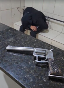 Segundo informações, eram por volta das 23h45, quando o Centro de Operações da PolÃcia Militar (COPOM) foi comunicado, que marginais haviam acabado de roubar um veÃculo Fiat Mobi da cor vermelha. Os policiais, tenente Felipe, os cabos Vendovelli, César e o soldado Ribeiro avistaram o carro na Av. Tetracampeonato, bairro Cidade Aracy. Os policiais deram sinais de parada, mas o condutor empreendeu fuga. Foi feito acompanhamento e o carro foi abordado. Um simulacro de arma de fogo foi apreendido. T.C.E.S, ( que segundo a PM, tem  6 x passagens por furto, 4 por roubo, 3 por receptação e 2 por porte de arma de fogo) e K.N.S ( que também já tem duas passagens por roubo), foram encaminhados para a Central de PolÃcia Judiciária, onde foram autuados em flagrante por roubo e continuaram à disposição da justiça.