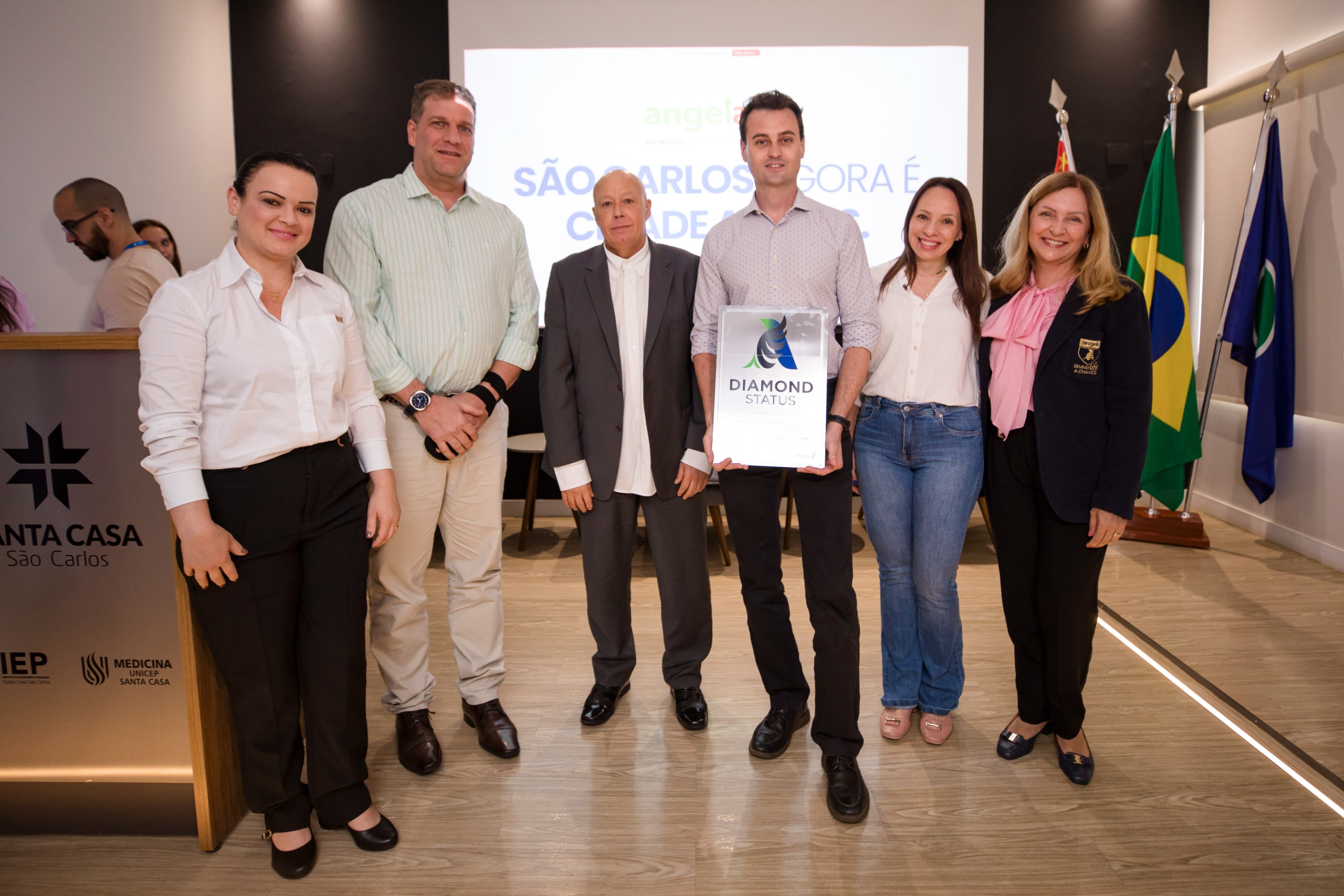 A Santa Casa de São Carlos sediou uma cerimônia especial para celebrar o reconhecimento de São Carlos como uma Cidade Angels, título internacional concedido a cidades comprometidas com a excelência no atendimento ao Acidente Vascular Cerebral (AVC). A certificação é resultado de uma ampla articulação entre instituições de saúde, poder público e comunidade, voltada à qualificação do cuidado e à redução do tempo de resposta nos casos de AVC.