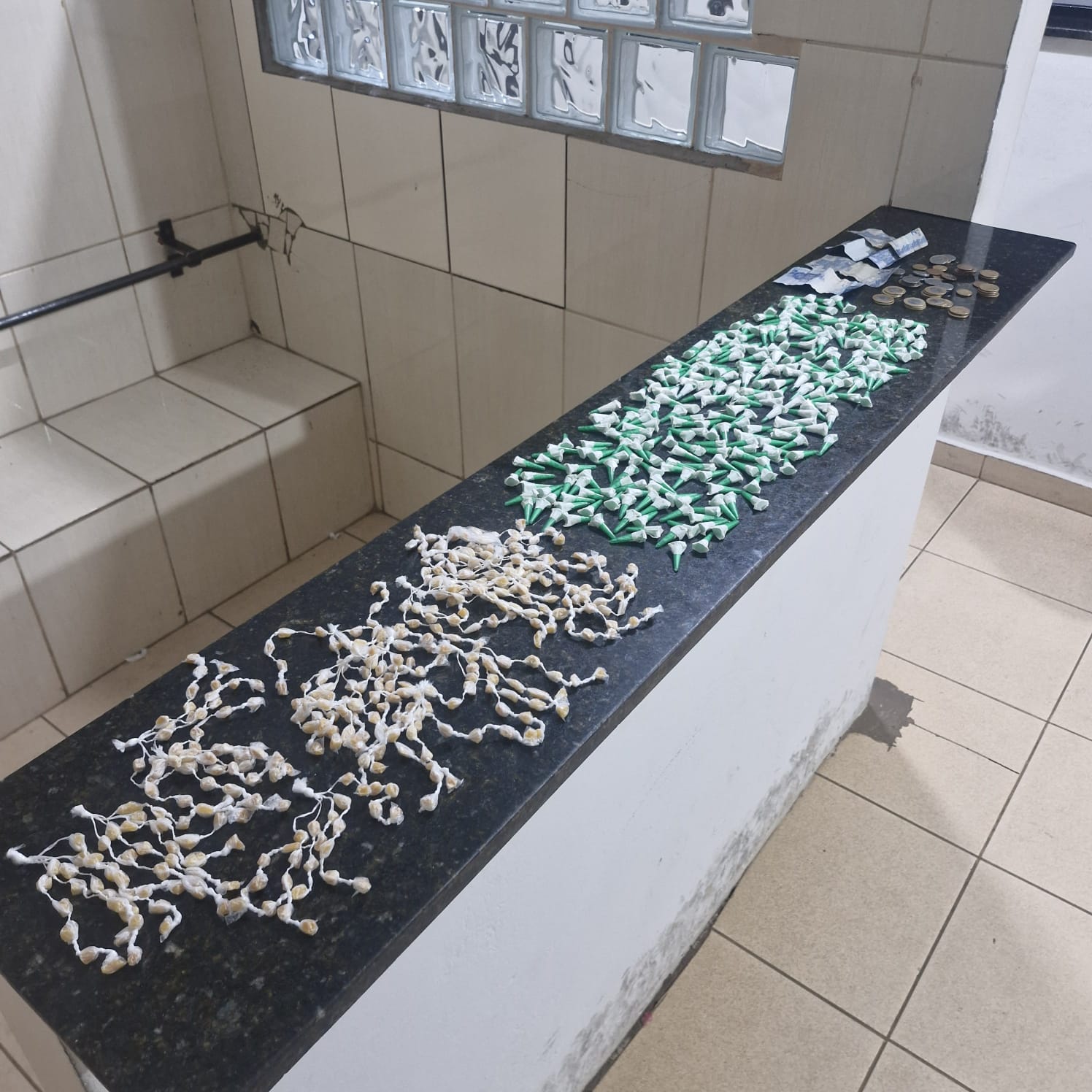 Policiais militares da Força Tática detiveram um indivíduo na noite de segunda-feira, 27-10-2025, e apreenderam drogas na Rua Rio São Francisco, esquina com a Rua Rio do Sono, bairro Jóquei Clube, São Carlos-SP. De acoco com informações, eram por volta das 22h37,  policiais militares estavam em patrulhamento, momento que avistaram um indivíduo saindo de um prédio abandonado. Este foi abordado e em seu poder,  foram localizados entorpecentes. H. S.S, informou que estava no local vendendo drogas e indicou onde estava o restante do entorpecente. Em poder das drogas o indivíduo foi encaminhado para a Central de Polícia Judiciária, onde foi autuado em flagrante por tráfico de drogas e recolhido ao Centro de Triagem de São Carlos.
