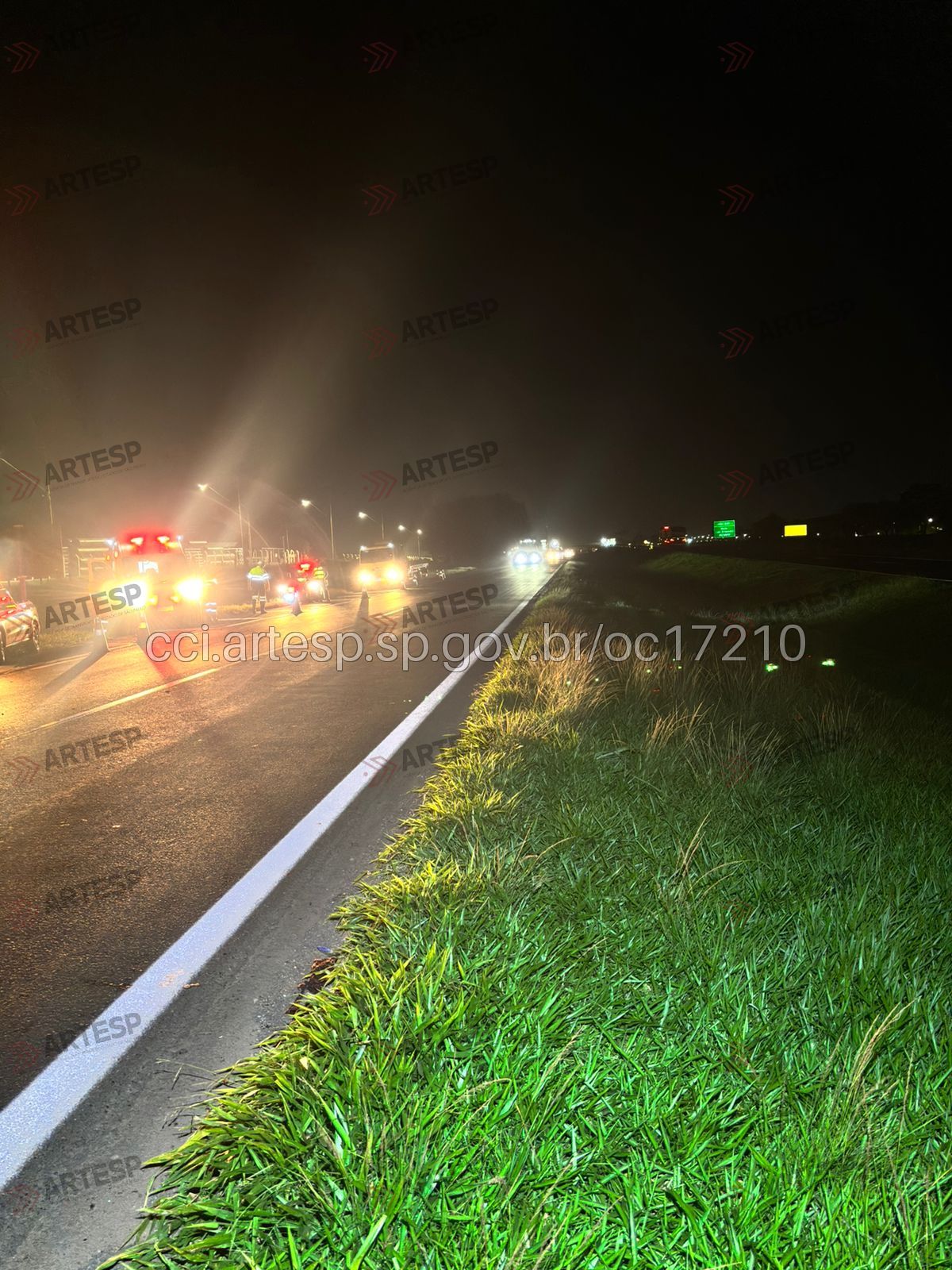 Uma mulher ainda não identificada, morreu atropelada na noite de quinta-feira, 13-11-2025, no km 250 da rodovia Washington Luís, região de Ibaté-SP.