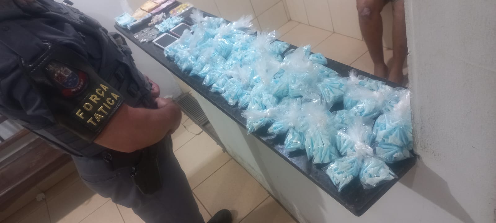 De acordo com informações, o sargento Alcântara e os cabos Jefferson e Tiago estavam em operação pelo referido local, quando avistaram o menor, o qual tentou fugir, mas foi detido. Em revista pessoal, foram localizados entorpecentes dentro de uma pochete. Nas proximidades onde o menor estava, foram localizadas mais drogas. No total foram apreendidos 1.610 pinos de cocaína, 19 pedras de crack, 07 porções de maconha, 38 comprimidos de ecstasy, R$ 2.144,00 e 03 celular. O menor foi encaminhado para a Central de Polícia Judiciária, onde foi qualificado e liberado.