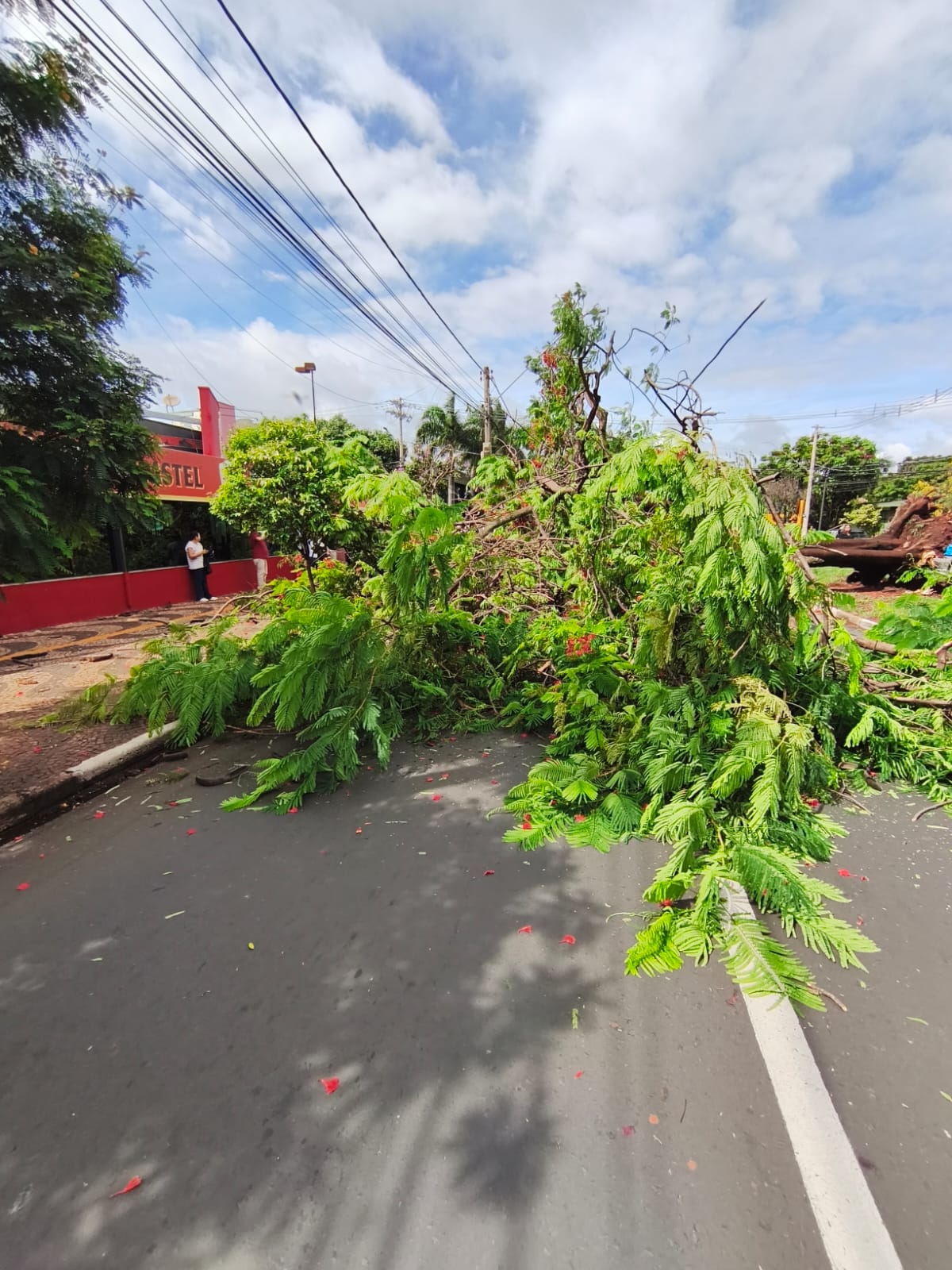 Na manhã desta quarta-feira (10), um flamboyant desabou e atingiu um carro na Avenida Bento de Abreu, na Fonte Luminosa, em Araraquara-SP. O acidente aconteceu em frente à Rádio Morada do Sol, cruzamento com a Avenida Circular Mário Arita e fechou o trânsito em direção a rotatória da antiga CTA.