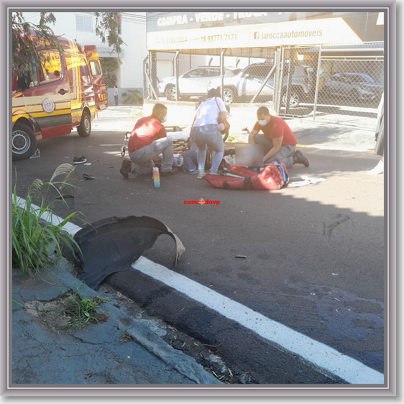 Um motociclista de 23 anos sofreu fraturas em uma das pernas ao ser atingido por um veículo Fox nesta manhã de terça-feira, 23 de dezembro de 2025, no cruzamento da Rua Major José, com a Rua Rui Barbosa, São Carlos-SP.