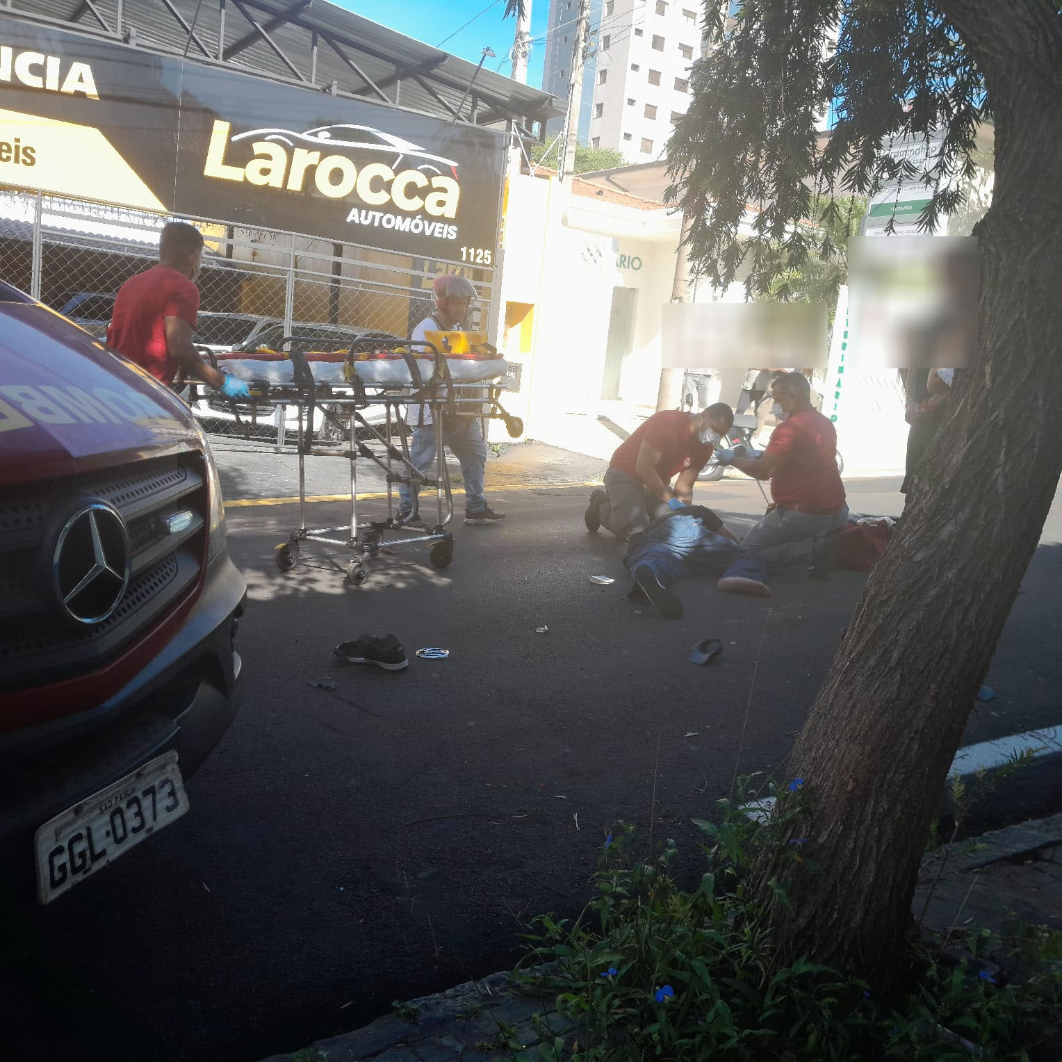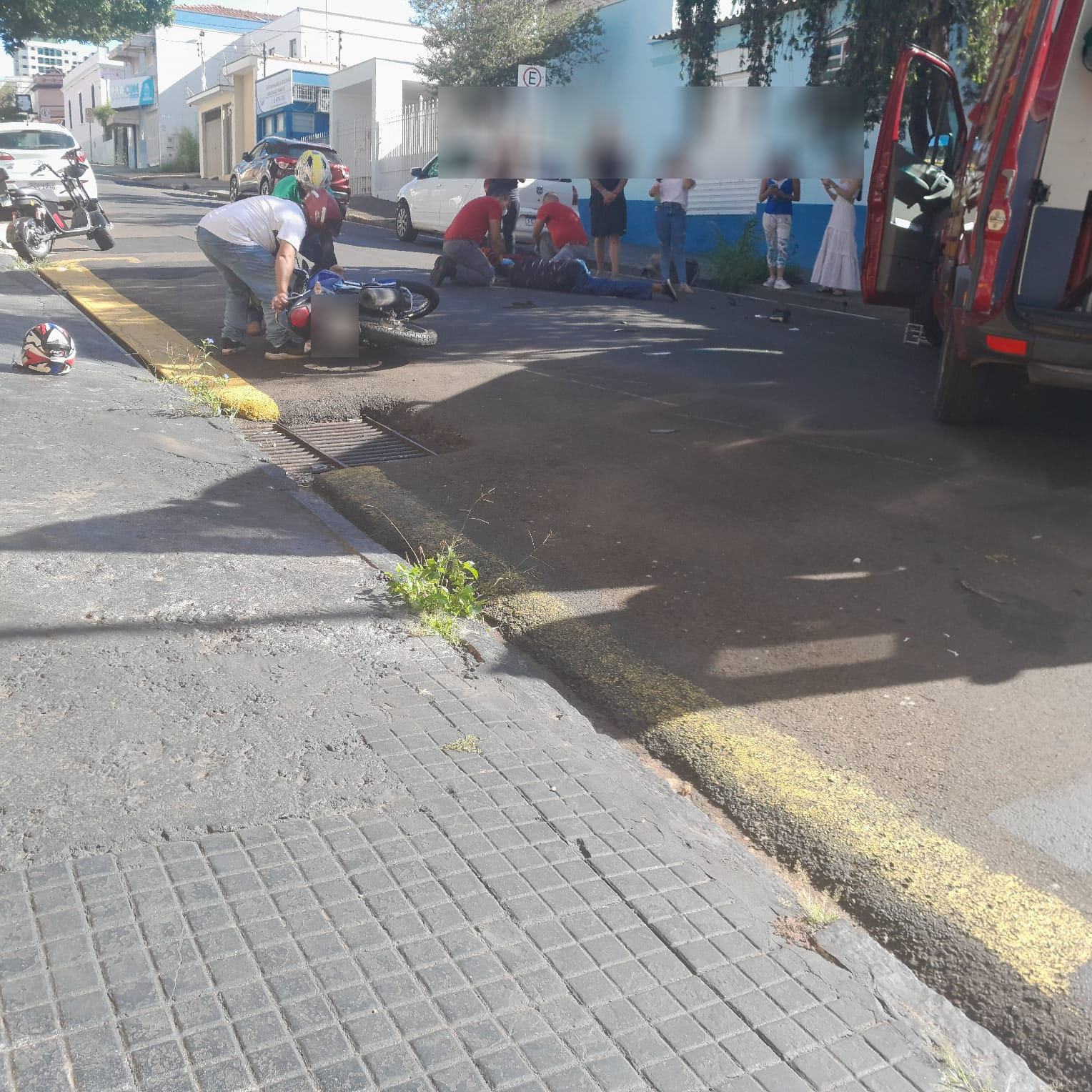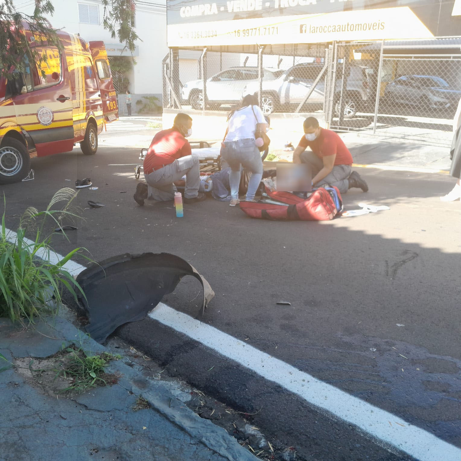 Um motociclista de 23 anos sofreu fraturas em uma das pernas ao ser atingido por um veículo Fox nesta manhã de terça-feira, 23 de dezembro de 2025, no cruzamento da Rua Major José, com a Rua Rui Barbosa, São Carlos-SP.