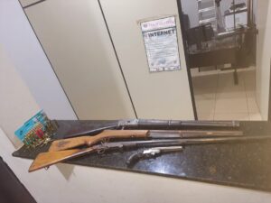 Um homem foi preso em flagrante na noite de domingo, 28-12-2025, por posse irregular de arma de fogo. A prisão ocorreu na Rua Major Manoel Antônio de Matos, bairro Jardim Ricetti, São Carlos-SP. De acordo com informações, o Centro de Operações da Polícia Militar (COPOM) foi comunicado, que um sujeito teria efetuado disparos de arma de fogo na via pública. Policias da Força Tática foram rapidamente para o local e abordaram o suspeito. Com ele nada de ilícito foi localizado. Dentro do imóvel foram encontradas três carabinas, uma garrucha e várias munições. O detido foi encaminhado para a Central de Polícia Judiciária, onde foi autuado em flagrante e recolhido ao Centro de Triagem de São Carlos.