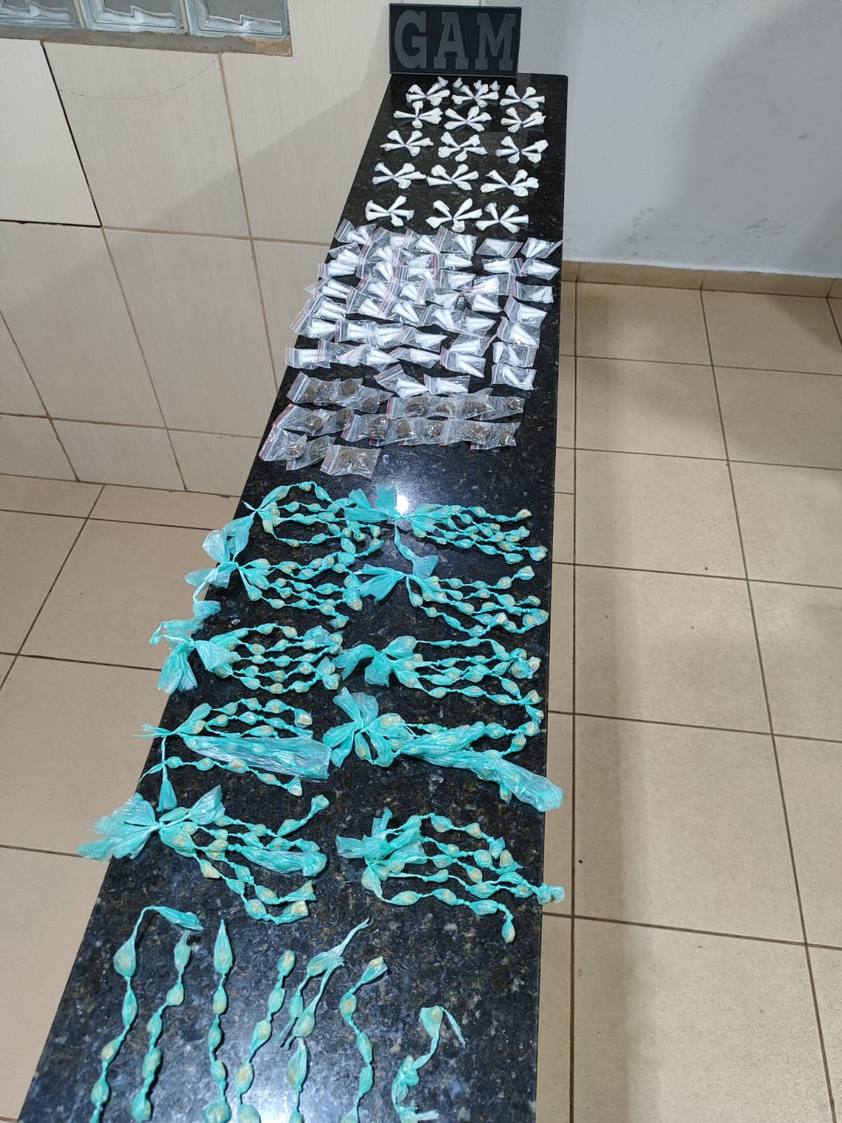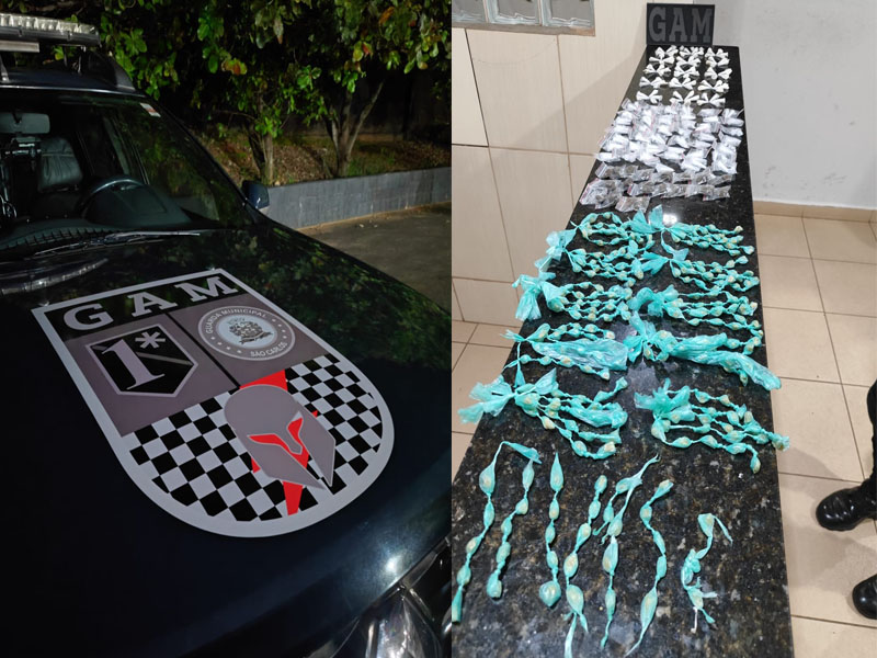 De acordo com informações, uma equipe estava em patrulhamento, quando avistou dois indivíduos na via pública. Estes saíram correndo e não foram abordados. Foi realizada busca nas imediações, ocasião em que foi localizada, no interior de um cano de saída de água pluvial, uma sacola contendo 17 porções de maconha, 167 pinos de cocaína e 283 pedras de crack, todas devidamente embaladas. As drogas foram encaminhadas para a Central de Polícia Judiciária, onde foram apreendidas.