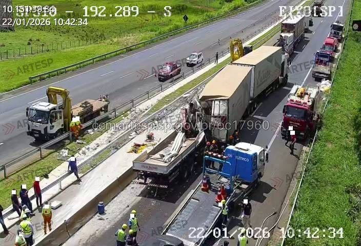Um grave engavetamento ocorrido nesta manhã de quinta-feira, 22 de janeiro de 2026, no km 192,  da rodovia Washington LuÃs, em CorumbataÃ, no sentido sul, deixou dois mortos. acidente na rodovia Washington LuÃs