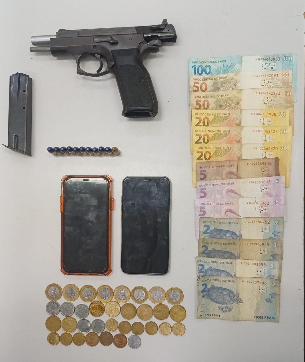 Segundo informações, durante patrulhamento, a PM avistou um VW/Polo que, com a aproximação da viatura, tentou fugir pela Avenida Homero Nigro, sendo necessário breve acompanhamento. O veículo foi localizado e dentro do assoalho, no banco do passageiro, foi encontrada uma pistola calibre 9 MM, com 11 munições, um carregador, dois celulares e notas trocadas de dinheiro. Diante dos fatos, o homem foi levado para o Plantão Policial e em seguida encaminhado à Cadeia Pública de Santa Ernestina.