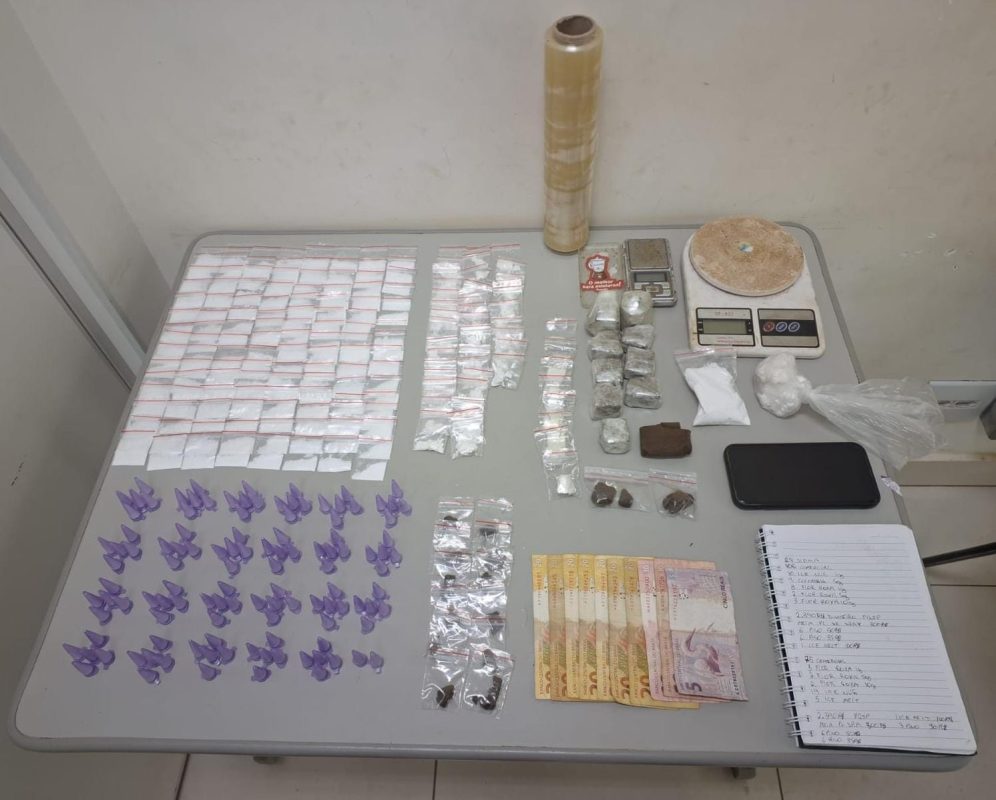 A PM de Araraquara-SP, deteve um sujeito de 20 anos, na tarde de sábado, 24-01-2026, e apreendeu  drogas no Parque São Paulo. A prisão ocorreu na  Avenida Gervásio Brito Francisco. De acordo com informações, uma equipe policial estava em patrulhamento preventivo, quando avistou um VW Gol. O condutor  apresentou nervosismo excessivo ao notar a presença da viatura. Foi dada ordem de parada, mas o motorista não obedeceu, sendo iniciado acompanhamento por diversas ruas da região. Durante a fuga, o suspeito arremessou uma sacola para fora do carro. Momentos depois, com o apoio de outras viaturas, foi possível abordar o suspeito. Na sacola descartada, foram localizados 237 papelotes e pinos de cocaína, 23 porções de haxixe, 9 porções de maconha, duas balanças de precisão, um caderno com anotações, celular e R$ 165,00. O detido foi encaminhado para o Plantão Policial, onde foi autuado em flagrante por tráfico de drogas e recolhido a  Cadeia Pública de Santa Ernestina. O veículo foi recolhido administrativamente. Foto e fonte: Por  Morada