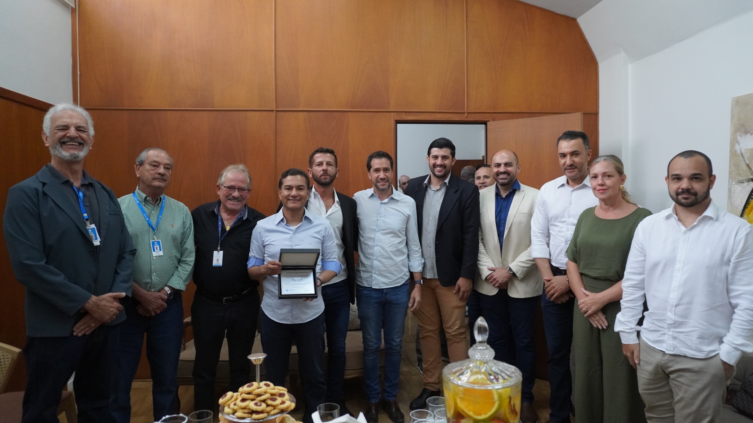 Na sexta-feira (23), a Santa Casa de São Carlos recebeu a visita do Deputado Federal Marcos Pereira. O parlamentar foi recebido pelo vice-provedor Aldomiro Pedrino, que representou o provedor Antonio Valério Morillas Junior, além do diretor administrativo e financeiro Danilo Carvalho Oliveira, da gerente de Relações Institucionais Ariellen Guimarães, do assessor de Relações Institucionais e Governamentais Marcos Daniel, e dos mesários Omar Casale, Luis Carlos Trevelin e Silvio Coelho. Durante a visita, foi entregue ao deputado um ofício da Santa Casa solicitando apoio para a aquisição de 10 cardioversores, no valor total de R$ 350.000,00 (trezentos e cinquenta mil reais). Os equipamentos são fundamentais no atendimento de emergências cardíacas, já que a reanimação cardiopulmonar é uma resposta sequencial e organizada diante da parada cardíaca. O cardioversor permite a detecção do ritmo e da frequência cardíaca, além de fornecer terapias elétricas essenciais para a reversão do quadro clínico. Na oportunidade, o Deputado Federal Marcos Pereira também recebeu a placa “Amigo da Santa Casa”, em reconhecimento ao apoio e à atenção dispensada à instituição. A homenagem foi entregue pelo vice-provedor Aldomiro Pedrino, pelos mesários e pelo assessor Marcos Daniel. De acordo com o vice-provedor Aldomiro Pedrino, a visita reforça a importância do diálogo com representantes públicos. “A Santa Casa é uma instituição que atende toda a região e depende de apoio para seguir avançando. A visita do deputado e a entrega deste ofício representam um passo importante para o fortalecimento do atendimento prestado à população”, destacou. O Deputado Federal Marcos Pereira ressaltou a importância do trabalho desenvolvido pela Santa Casa. “É fundamental conhecer de perto a realidade das instituições de saúde. Temos alguns recursos já destinados para a realização de exames e cirurgias, e entendemos a necessidade de novos recursos para a saúde. A Santa Casa de São Carlos realiza um trabalho essencial, e vamos analisar com atenção a demanda apresentada, buscando contribuir dentro das possibilidades para o fortalecimento do atendimento", afirmou. Também participaram da visita os vereadores Bruno Zancheta e Elton Carvalho, o secretário da Pessoa com Deficiência e Paradesporto de São Carlos, Rafael Almeida, o prefeito de Descalvado, Luis Guilherme Panone, e a presidente da Câmara Municipal de Descalvado, Dra. Vanisse Rodrigues Gonçalves.