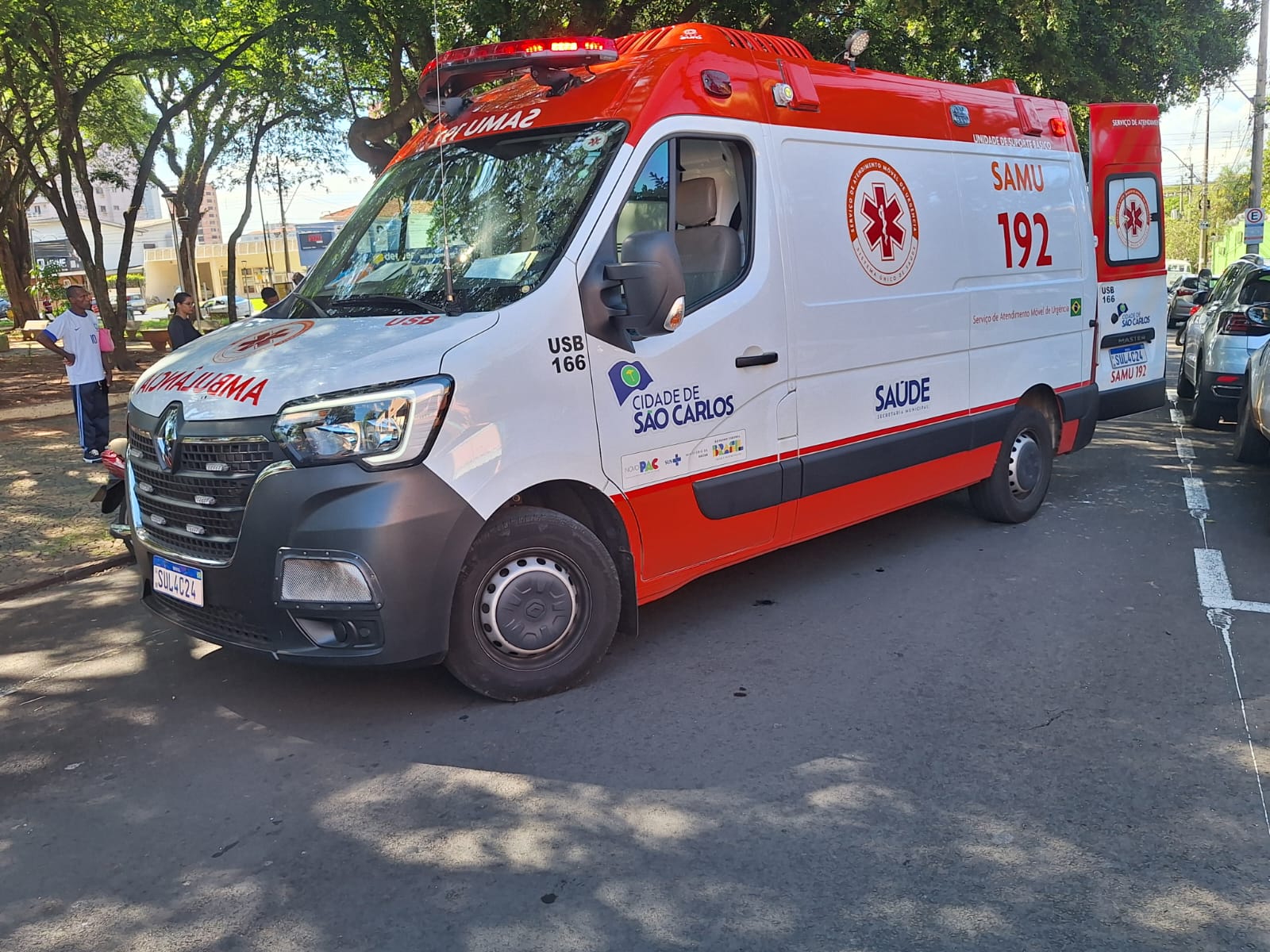 Um homem de 39 anos ficou levemente ferido em um acidente nesta manhã de terça-feira, 27 de janeiro de 2026, na Rua Riachuello, quase cruzamento com a Rua XV de Novembro, Centro de São Carlos-SP.