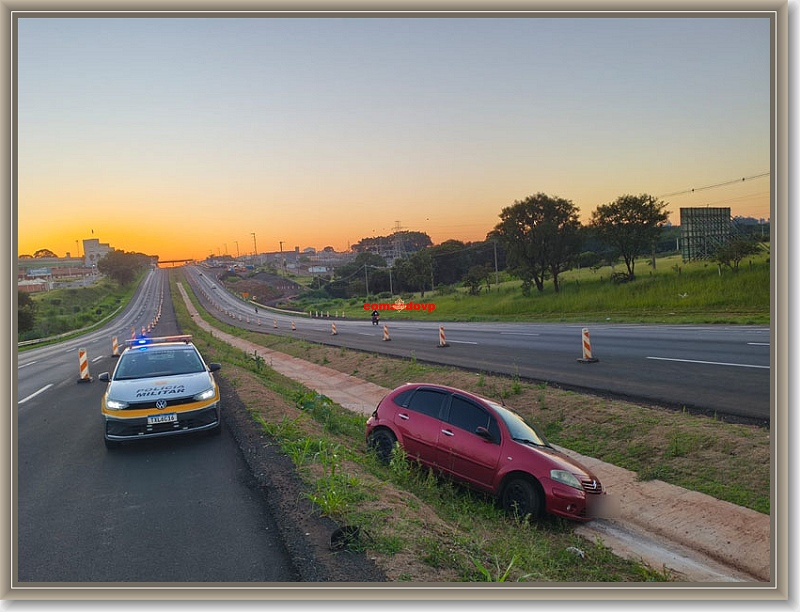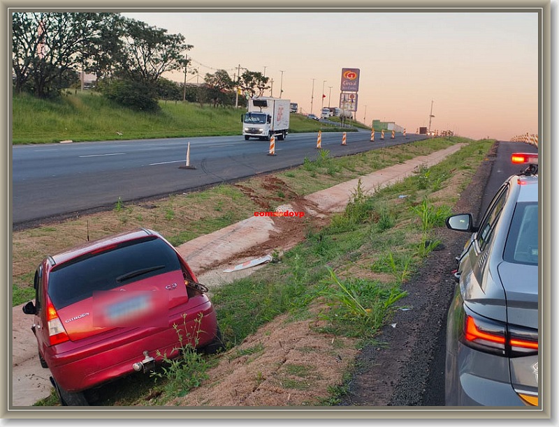 De acordo com informações, o sujeito transitava no sentida Ibaté/São Carlos, teria perdido o controle da direção do seu C3 da cor vermelha, saído da pista e colidido contra o talude do canteiro central. Ele ficou levemente ferido e foi socorrido para a Santa Casa. A Polícia Militar Rodoviária esteve presente no local do acidente e convidou o acidentado para soprar o bafômetro, mas ele se recusou. O carro estava com licenciamento vencido e foi recolhido ao pátio da Polícia Rodoviária.