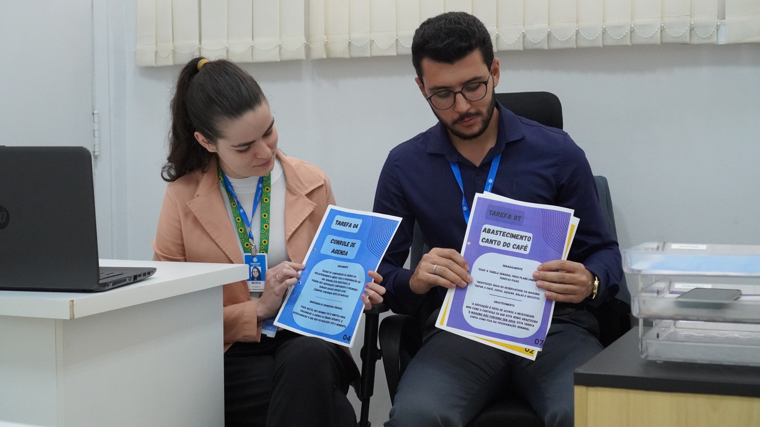 Desde o início, o setor de Relacionamento Médico estruturou um ambiente preparado para sua integração. Lucas Salvador, que acompanha o trabalho no setor, explica que a prioridade foi garantir conforto e segurança na rotina. “Quando a Maria Eduarda começou aqui no setor, nossa prioridade número um foi criar um espaço de acolhimento, onde ela se sentisse bem e confiante. Sabendo da dificuldade dela com números, desenvolvemos um cronograma baseado em cores, com uma planilha que diferencia as tarefas visualmente. Isso facilitou muito o dia a dia e tem dado excelentes resultados.”