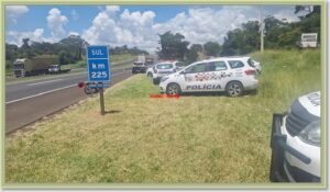 A Polícia Militar foi informada de que os suspeitos estariam se deslocando pela região e poderiam passar por São Carlos, nas proximidades da praça de pedágio. Equipes iniciaram o patrulhamento e localizaram o veículo na região do km 225 da Rodovia Washington Luís, no sentido sul.