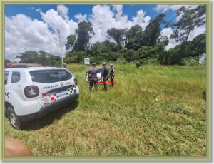 A Polícia Militar realiza buscas na região na tentativa de localizar os demais suspeitos que fugiram pela mata. O caso será apresentado à Polícia Civil para investigação.
