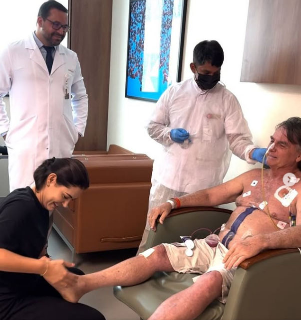 A ex-primeira-dama Michelle Bolsonaro (PL-DF) compartilhou, na tarde desta terça-feira (24/3), fotos de Jair Bolsonaro (PL) durante a hospitalização mais recente. O ex-presidente está internado no Hospital DF Star, em Brasília, para tratamento de uma broncopneumonia desde o dia 13 de março. Na legenda das fotos, que teriam sido tiradas no segundo dia de hospitalização, Michelle afirma que celebra “as pequenas vitórias”. O ministro Alexandre de Moraes, do Supremo Tribunal Federal (STF), autorizou, nesta terça, a prisão domiciliar a Bolsonaro por um prazo inicial de 90 dias. “Sim, eu celebro as pequenas vitórias. Não me detenho nos detalhes do processo. Sou esposa e mãe, e clamei muito a Deus para que nos ajudasse, para que ele pudesse ir para casa e receber o cuidado necessário. O amanhã pertence a Deus. A justiça e o juízo estão nas mãos Dele”, escreveu. Michele afirma que seguirá cuidando do marido “com amor, resiliência, dedicação e fé.”
