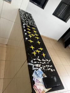 De acordo com informações, policiais estavam em patrulhamento, quando avistaram um suspeito na via pública. Este estava com uma sacola e tentou fugir. Os policiais foram no encalço e o detiveram. Com ele foram localizadas drogas. O meliante foi encaminhado para a Central de Polícia Judiciária e permaneceu à disposição da justiça.