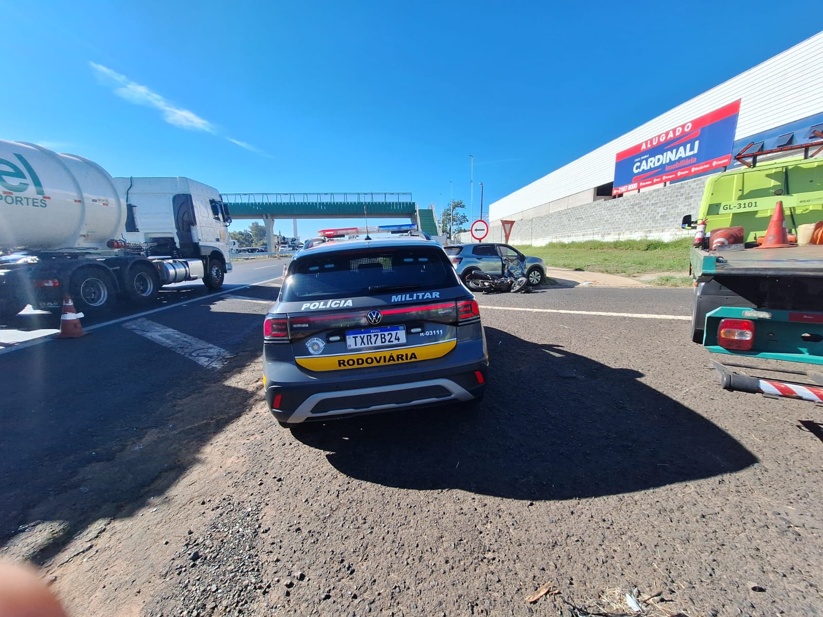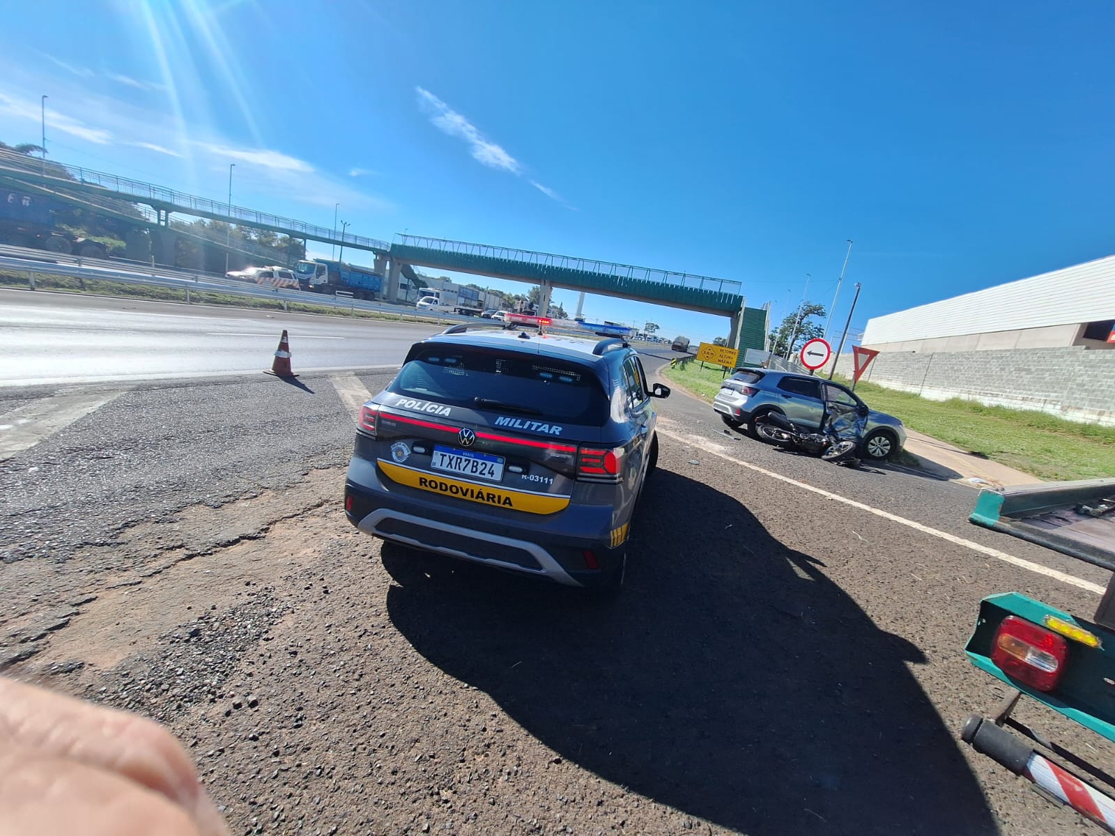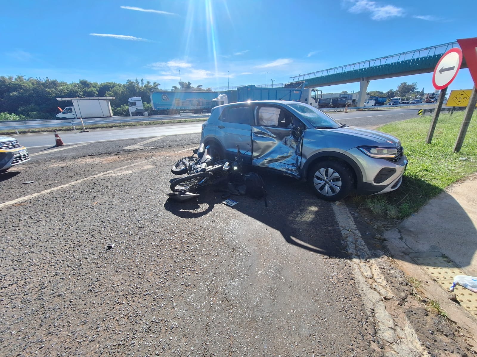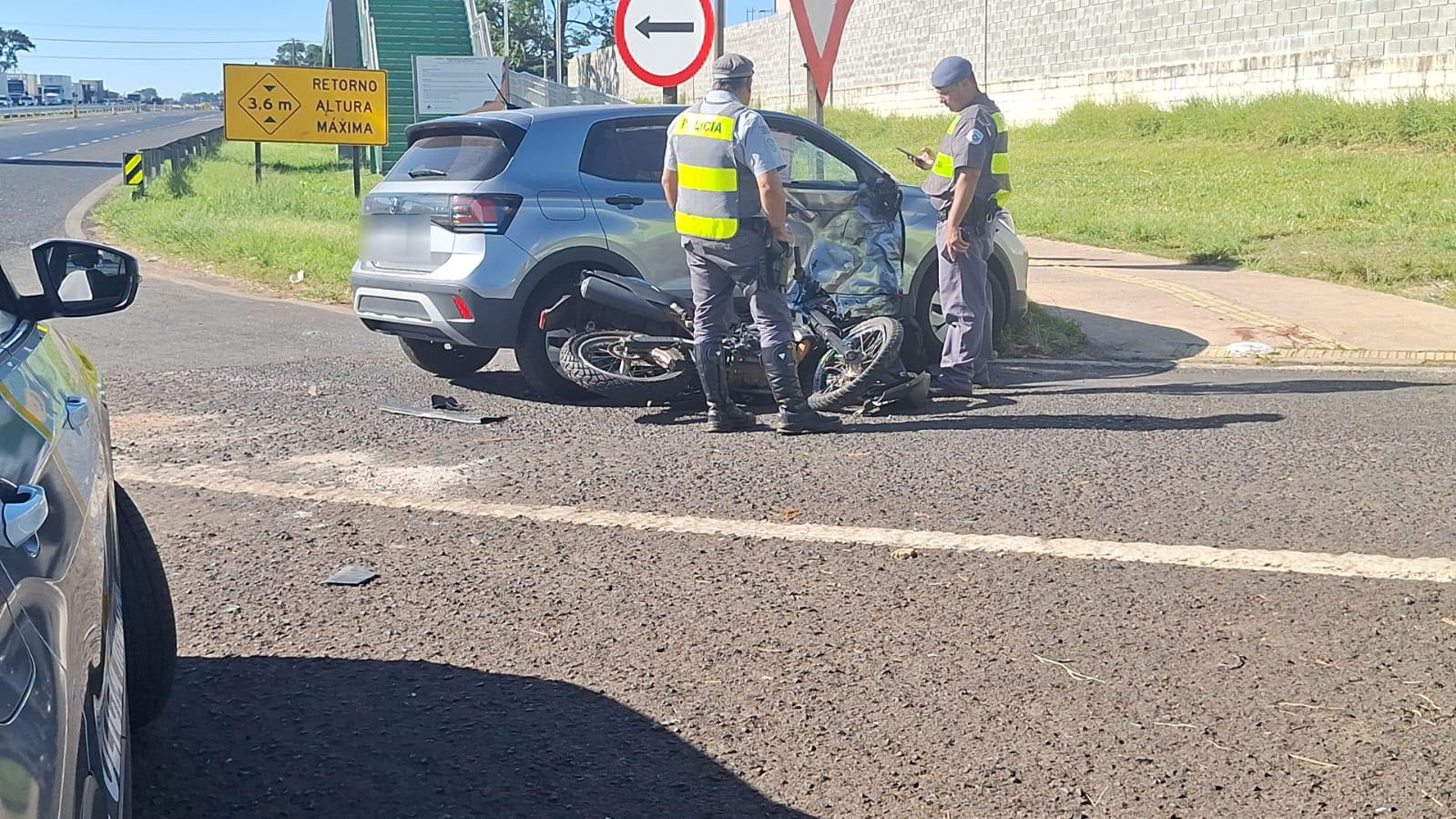 De acordo com informações, um veículo T-Cross transitava no sentido interior/capital, quando uma moto colidiu na lateral do carro. O motociclista ficou gravemente ferido e foi socorrido e encaminhado para a Santa Casa de São Carlos. Os ocupantes do T-Cross nada sofreram. A Polícia Militar Rodoviária e a Polícia Científica estiveram no local e tomaram as medidas cabíveis.