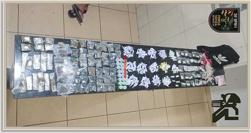 Na sacola foram localizados 207 pinos de cocaína, 61 porções de maconha, 91 porções de crack, 23 porções de Skank e 39 porções de ice R$ 10,00. O menor, o qual segundo consta, já tem passagem por roubo, foi encaminhado para a Central de Polícia Judiciária, onde ficou à disposição da família.