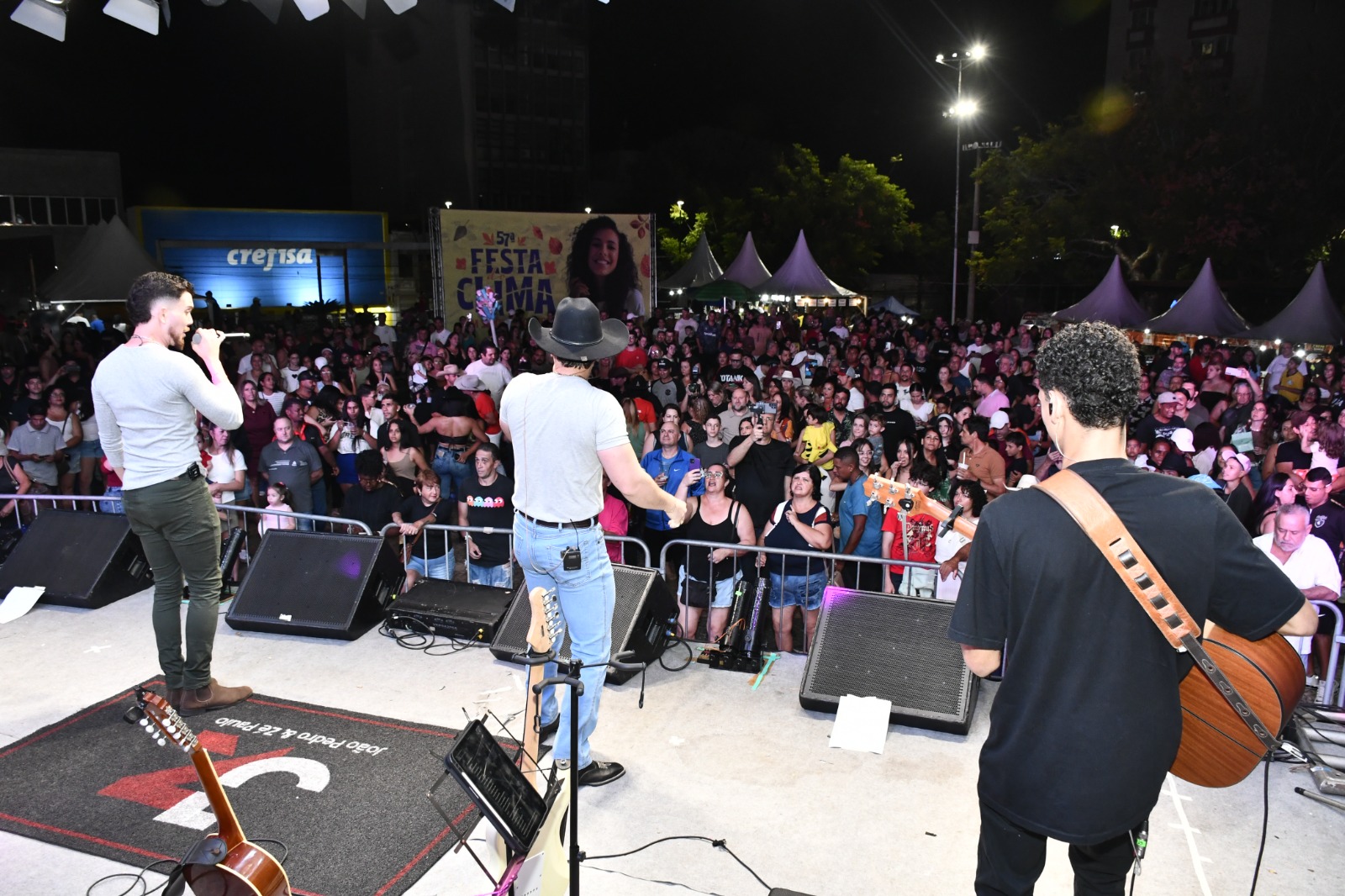 No sábado (25/04), o público foi recebido pelo som contagiante da banda Maracatrio, que abriu a programação com ritmos brasileiros cheios de energia. Logo depois, a cantora e compositora Duda Stefano emocionou com um repertório inspirado na cultura nordestina, trazendo o forró como protagonista da noite. “Fiquei muito feliz de poder participar dessa festa linda, que já soma mais de 50 edições. É uma tradição da cidade e agradeço à Prefeitura por abrir esse espaço para os nossos artistas locais”, disse.