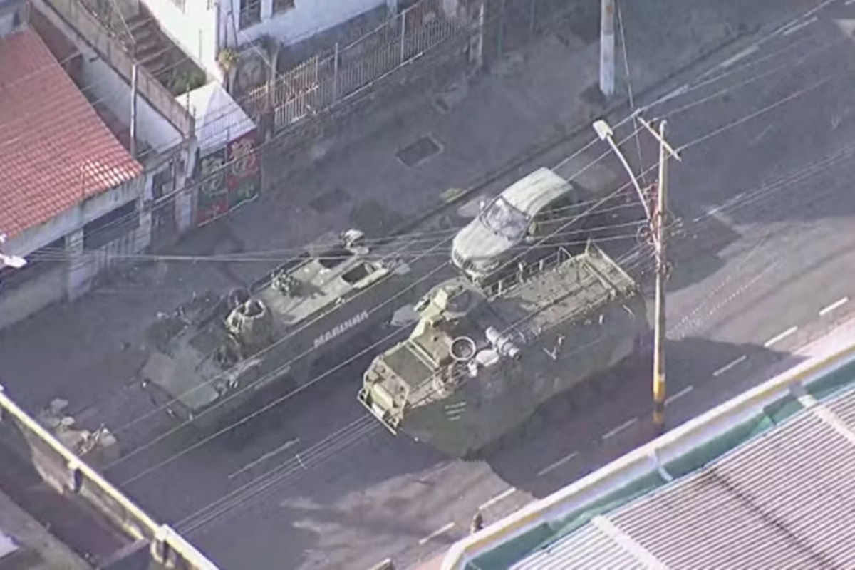 Fuzileiros navais e veículos blindados da Marinha fazem uma operação no Complexo do Lins, no Rio de Janeiro, nesta quinta-feira (12/12/2024). A mobilização ocorre nas proximidades do Hospital Marcílio Dias e, de acordo com a Marinha...